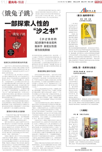《饿兔子跳》深入探讨了当代女性的困境与她们的自我救赎,展现了一组具有时代特征的女性群像,她们的遭遇令人心疼:阮冬冬被母亲送进戒网瘾学校的经历,成为难以挥去的梦魇,对她的心理造成了极大的创伤;她的姑姑阮金发觉自己“无法胜任那种单纯的、持续性的爱和责任”,只能在网络上寻求情感慰藉;作品还借人物之口诉说了单身女性的恐惧:“走在熟悉的街上我不再感到安全,坐出租车我不再和司机闲谈,走夜路会忍不住一直往后看……”小说揭示了种种对于女性的显性与隐性伤害,为那些处于黑暗角落中的女性发出了呐喊,给予她们希望的微光。“对一位女性的剥削,就是针对所有女性的剥削”,小说家怀揣这样的赤诚信念,以凛冽叙事打捞女性“被剥削”“被隐藏”的命运,涉渡人性的无底深渊,要让她们在被黑暗吞噬前,抵达爱和宽宥的彼岸。