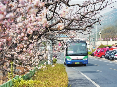 除赏梅线路外,温馨巴士还梳理出多条特色赏花线路。468路串联八大关的迎春花海;开往崂山北宅的628路化身“樱桃花专列”,乘客在下葛场站下车即可感受粉色云霞般的樱桃花海;行经李沧文化公园的606路,海棠花溪景观即将绽放,4月就能前往观赏;674路一路繁花争奇斗艳,金钟花、樱桃花赏不停;609路直达北岭山公园,郁金香美不胜收,爬山赏花两不误……针对春季出游特点,温馨巴士“赏花公交”均实施动态调度,根据客流随时增发机动运力。“我们通过公交线网与赏花热点的精准对接,既缓解景区周边停车压力,也助力市民低碳出行。”温馨巴士相关负责人说。