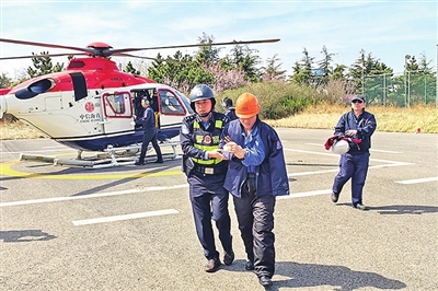 3月29日,新加坡籍“远千海号”轮正处于出境过程中,一名中国籍船员在作业时,手指被严重割伤,伤势严重急需救治。董家口边检站接到求助电话后,立即开通“紧急通道”,依托海上联合救援机制,协调相关部门派出直升机参与救援。当天中午12时30分,边检民警乘直升机抵达该轮甲板,现场对受伤船员进行人证对照检查,给其办理入境边防检查手续后,与其他船员一起将伤员搀扶上直升机。13时许,直升机安全降落在青岛董家口航运中心停机坪。随即将受伤船员换乘救护车送往医院进行救治。经医院诊断,该船员左手中指和无名指前端各有一处严重割伤,目前受伤船员得到了妥善的治疗。