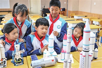 早报4月24日讯 4月24日,第十个“中国航天日”如约而至。在这意义非凡的时刻,青岛市即墨区环秀中心小学精心组织开展航天科技主题科普活动,老师向学生们普及航空航天知识,同学们动手制作航天模型,以多样形式引领学生探索航天奥秘,感受中国航天事业的辉煌成就。
