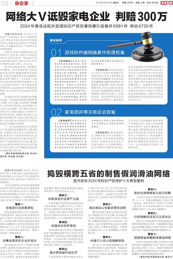 ~~~2024年青岛法院共受理知识产权民事刑事行政案件6981件 审结6726件