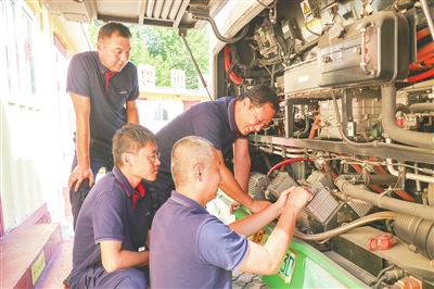 在李沧巴士公司,“焕新联盟”技术小组由3名经验丰富的修理工以及一名年轻的驾驶员组成,每个人都有“独门绝技”。组长李永孝和组员纪昆仑擅长机械结构拆解与故障诊断,曲志格专攻电器系统,能快速定位电路隐患,毕德会则精通配件选型。