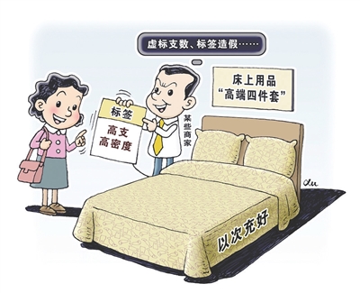 标签信息是假的,检测报告也是假的……近日,“新华视点”记者走访多地家纺市场发现,一些在售床上用品“高端四件套”存在以次充好等问题。