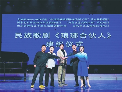 早报12月11日讯 12月11日上午,民族歌剧《琅琊合伙人》建组仪式在青岛市歌舞剧院梦幻剧场举行,标志着这部聚焦乡村振兴主题、充满新时代气息的艺术作品正式启动排练。该剧由文旅部中国民族歌剧传承发展工程指导委员会、中国歌剧研究会、青岛市委宣传部、青岛市文化和旅游局指导,青岛演艺集团出品,青岛市歌舞剧院创排,兼具喜歌剧风格与轻歌剧样式,未演先热便已斩获多项重要扶持。