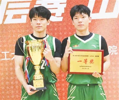 早报1月11日讯 在第28届中国大学生篮球联赛山东省基层赛中,中国石油大学(华东)男篮以全胜战绩首次夺得冠军,书写了学校篮球史上的新篇章。这支团结的队伍中,“双胞胎兄弟”苏振兴与苏振业以默契的配合,成为球队制胜关键因素之一。