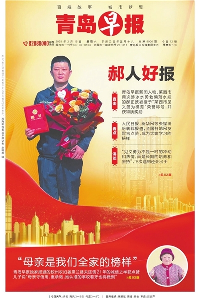 2025年1月29日(农历大年初一)12时左右,回乡探亲的郝正波正在家中吃团圆饭。突然,出门玩耍的孩子们回来喊道:“有人落水了!”郝正波来不及多想,丢下碗筷就朝着孩子所指的方向跑去。到达现场,他看到有两个孩子坠入冰河中:大一点的男孩距岸边较近,站在水中大喊救命;小一点的孩子因距岸边稍远,水已淹至嘴边无法发声。危急时刻,郝正波用拳头砸碎冰层,成功救出这两个孩子。2025年2月,莱西市委政法委、市见义勇为协会授予郝正波“莱西市见义勇为模范”荣誉称号。